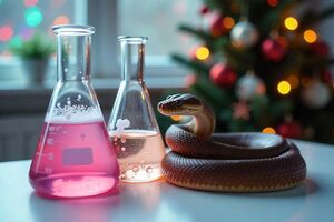 Поздравляем вас с наступающим Новым годом! Пусть в новом году ваша жизнь будет такой же насыщенной и яркой, как палитра красок реактивов в лаборатории, а успехи приходят с той же точностью, как идеаль...